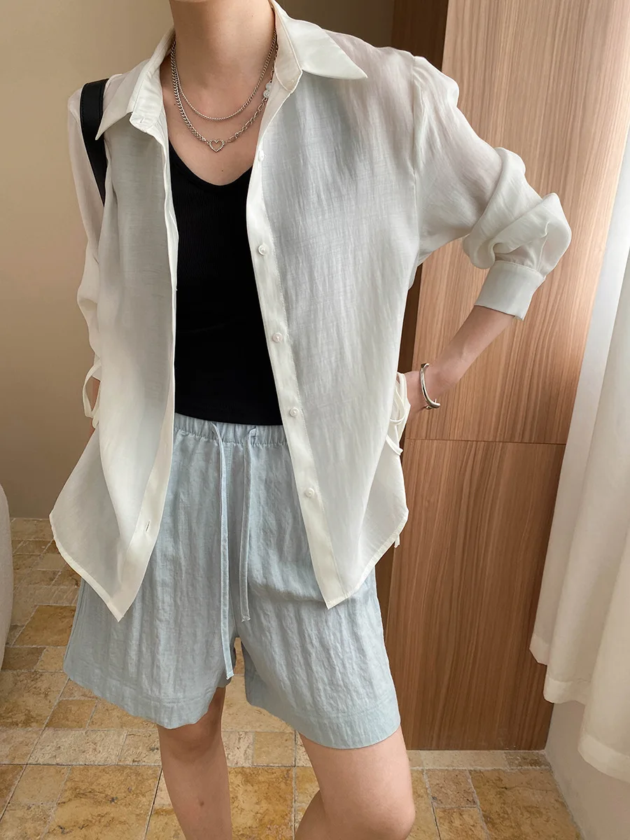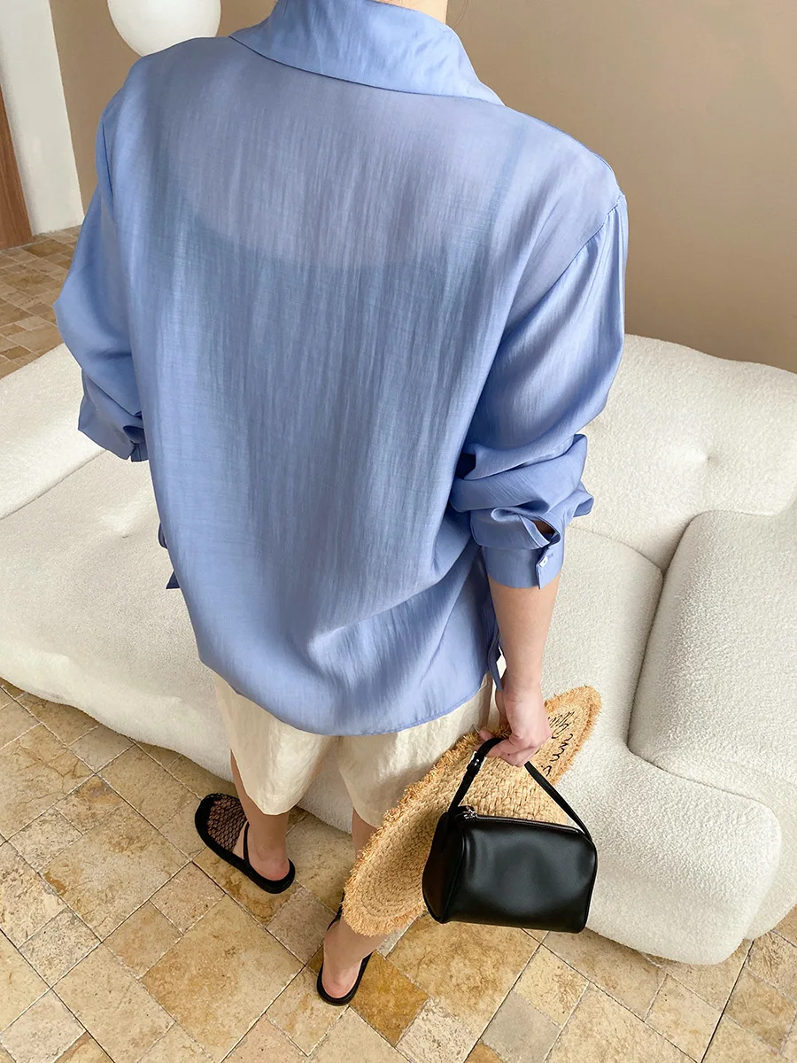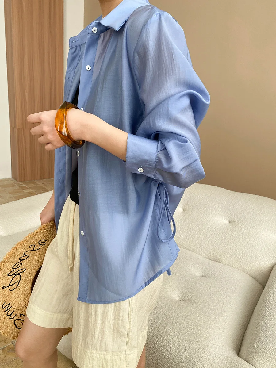 Custom Women's Light Blue Button-Down Shirt with Side Tie Details
